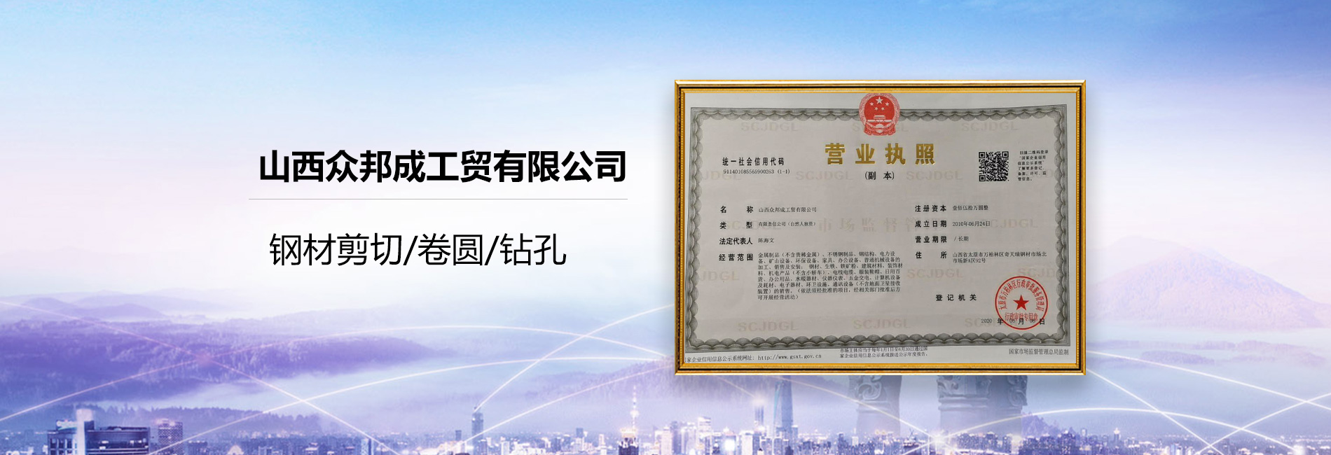 山西眾邦成工貿有限公司始創(chuàng)于1998年,注冊資金500萬,主營太鋼、唐山、敬業(yè)板材,年銷售量15萬噸以上,至今已成為華北地區(qū)具規(guī)模實力的鋼鐵貿易企業(yè)之一,公司全體員工在總經(jīng)理的帶領下,經(jīng)過堅持不懈的努力和拼搏,以精湛的品質、嚴謹務實的工作作風和旺盛的工作激情不斷創(chuàng)造著輝煌業(yè)績,公司在多年的經(jīng)營中得到各界同仁的信任和支持。 公司經(jīng)營產(chǎn)品有:卷板、開平板、中厚板、花紋板及各種鋼材,并且還擁有大型鋼材加工設備,加工范圍如下:剪板0.5-25mm...